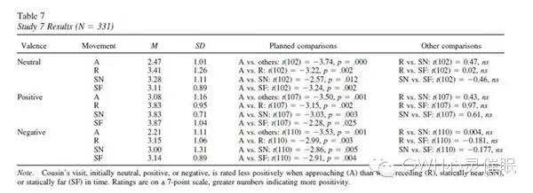 结果发现,无论参与者对于表亲来访这个事件的态度是积极的、中性的还是消极的,接近组里的参与者都比其他组的参与者感觉更消极!